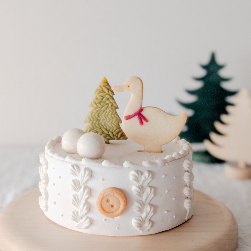 赤いマフラーを巻いたアヒルと、ツリーのクッキーを飾り付けてお楽しみくださいませ。